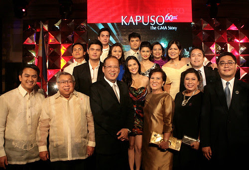 Beauty Queen, Little Star, Party Pilipinas, Pepito Manaloto, Grazilda, Asar Talo Lahat Panalo, Eat Bulaga, 24 Oras, Saksi, Imbestigador, Love ni Misis Love Ni mister, Doraemon, Unang Hirit, Survivor, Yaman ni Lola, OFW Diaries, Detective Conan, Shaman King, Koreana, Temptation of Wife, Bantatay, Press It Win It, East of Eden, I Witness, Reporter's Notebook, Born To Be Wild, Rescue, Bubble Gang, Show me da Manny, Comedy Bar GMA Kapuso Celebrities: Aira Bermudez, Aljur Abrenica, Alynna Asistio, Alyssa Alano, Annabelle Rama, Ara Mina, Arci Muñoz, Atlantika, Bela Padilla, Bianca King, Camille Prats, Carla Abellana, Carlo Aquino, Carmina Villaroel, Celebrity Face-Off, Chynna Ortaleza, Claudine Barreto, dahu, Daniel Matsunaga, Dennis Trillo, Dingdong Dantes, Dion Ignacio, Ehra Madrigal, Elmo Magalona, Francine Prieto, Francis Magalona, Geoff Eigenmann, Glaiza de Castro, Heart Evangelista, Isabel Oli, Iwa Moto, Iza Calzado, Jackie Rice, Janno Gibbs, Jasmine Villegas, Jay-R, Jennylyn Mercado, Jesi Corcuera, Jewel Mische ,jillian ward, Joey Marquez, Joey de Leon, John Lapus, Jolina Magdangal, Jolina Marie Reyes, Judy Ann Santos, Katrina Halili, Kris Bernal, Kris Lawrence, Kyla, LJ Reyes, Lolit Solis, lovi poe, Lucy Torres-Gomez, Maggie Wilson, Manny Pacquiao, Margaret Wilson, Marian Rivera, Mark Anthony Fernandez, Mark Herras, Marky Cielo, Mart Escudero, Marvin Agustin, Mel Tiangco, Mike Enriquez, Mike Tan, Nadine Samonte, Ogie Alcasid, Paolo Ballesteros, Paolo Bediones, Paolo Contis ,Paolo Paraiso, Patrick Garcia, Pauleen Luna, Paulo Avelino, Pia Guanio, Polo Ravales, Prince Stefan, Rainier Castillo, Raymond Gutierrez, Regine Velasquez, Rhian Ramos, Rich Asuncion, Richard Gutierrez, Rochelle Pangilinan, Ryan Agoncillo, Ryan Yllana, Ryza Cenon, Sexbomb, Solenn Heussaff, Stef Prescott, Sunshine Dizon, Sunshine Garcia trudis liit, Vic Sotto, Vicki Morales, Wendell Ramos, Yasmien Kurdi, Zoren Legaspi, La Diva GMA Network, Inc. (PSE: GMA7), a Philippine multi-media conglomerate, is a television network in the Philippines. GMA provides news and entertainment programs through its forty-seven fully owned television relay stations, four affiliate television stations and thirty-four radio stations throughout the Philippines. The network also offers its shows worldwide through GMA Pinoy TV, GMA Life TV and Internet TV. Its headquarters are located at the GMA Network Center at EDSA, Diliman, Quezon City. With transmitters at Tandang Sora, Quezon City. Atty. Felipe Gozon is its current Chairman and CEO. In Metro Manila, it uses terrestrial VHF Channel 7 (DZBB-TV), Channel 11 (DZOE-TV, leased from ZOE Broadcasting Network, operated by Q) and terrestrial UHF Channel 27 (DWDB-TV), it also uses the AM radio station DZBB and FM radio station DWLS. ***
